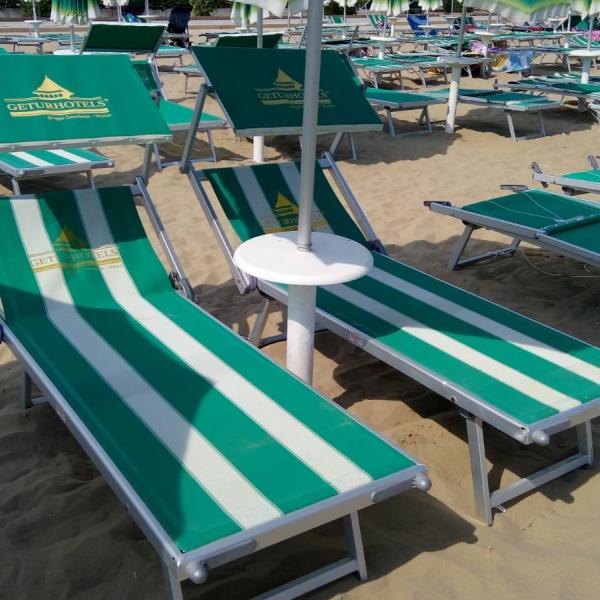 Offre inoltre ai propri ospiti una postazione con ombrellone e 2 lettini a camera presso la propria spiaggia